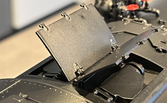 Die maßstäbliche Kupplungsattrappe im Kuhfänger kann nach dem Öffnen der beiden kleinen "Türen" wie beim Vorbild ausgeklappt werden. Die Rauchkammer kann ebenfalls geöffnet werden.