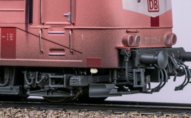 Exklusiv für die mhi erscheint nun mit der 151 025-4 ein Modell Baureihe, das einen solchen Betriebszustand um ca. 1998 darstellt. Das Modell ist sowohl ausgeblichen Lackiert als auch aufwendig gealtert mit Ausbesserungsstellen nachgearbeitet worden.
